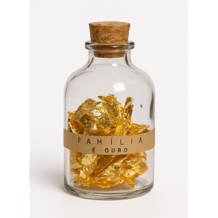 Garrafinha ouro é uma declaração "Família é Ouro"