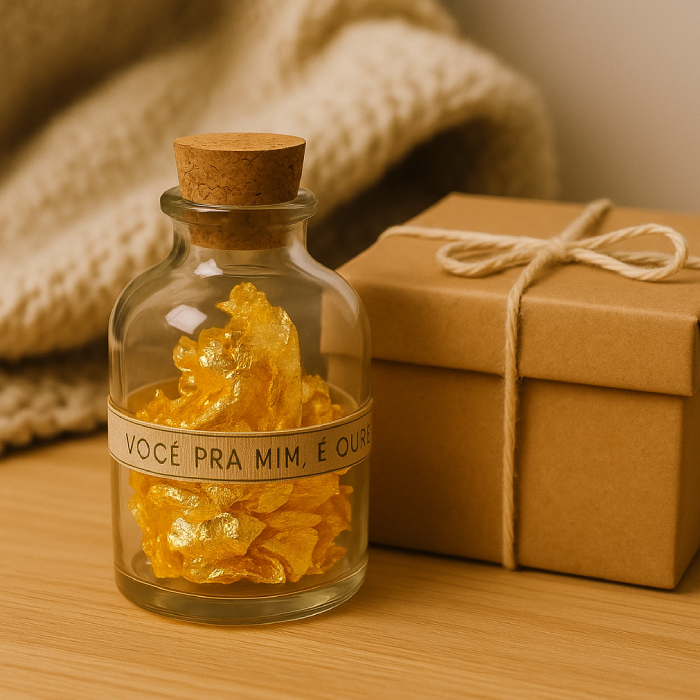 Contém folhas douradas no interior, simbolizando carinho e valor.Um presente delicado e cheio de significado para decorar ou presentear com afeto.
