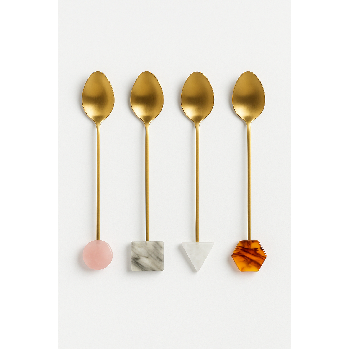 Kit com 4 Colheres de Chá – Aço Inox Dourado e Cabo com Geometric Shapes (12,8cm)