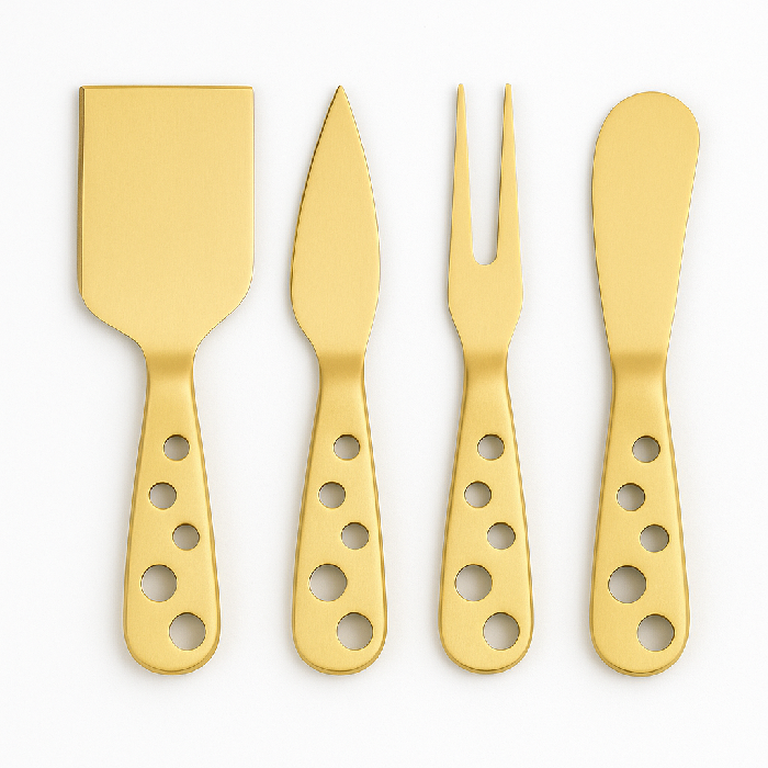 O Kit de Espátulas para Queijo em Aço Inox Dourado 4 Peças é a escolha perfeita para os amantes de queijos. Com um design elegante e sofisticado, este conjunto traz um toque de requinte para sua mesa. As espátulas possuem um acabamento em aço inox de alta qualidade, garantindo durabilidade e resistência. A cor Dourada adiciona um charme especial, combinando facilmente com qualquer estilo de decoração.