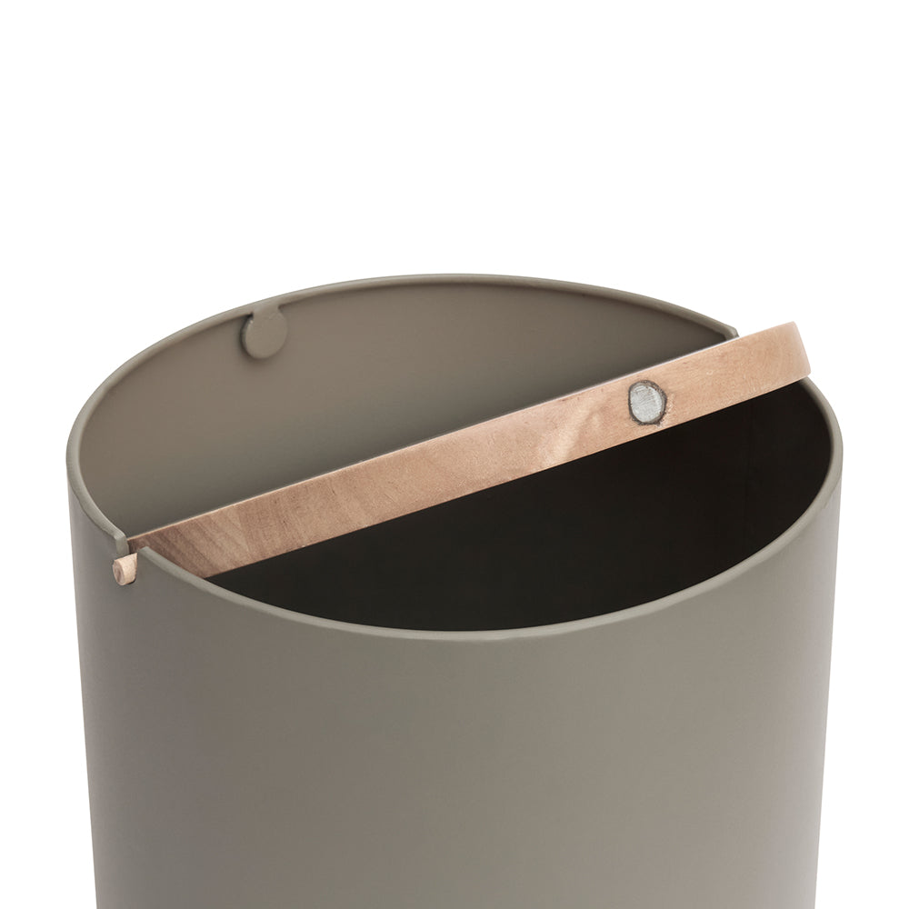 Com design minimalista e elegante, esta lixeira une a praticidade do metal à beleza natural da madeira.