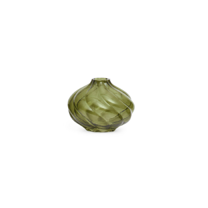 Seu design arredondado com acabamento em espiral traz movimento e leveza, enquanto o tom verde translúcido adiciona um toque natural e elegante.