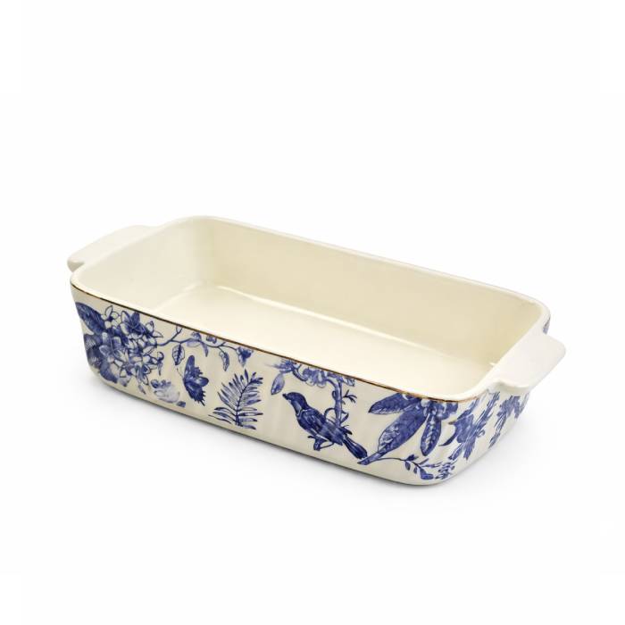 O refratário retangular floral azul é a combinação perfeita de elegância e funcionalidade. Com delicada estampa floral em azul e sofisticado filete dourado no acabamento, ele valoriza a mesa e deixa qualquer preparo ainda mais especial.