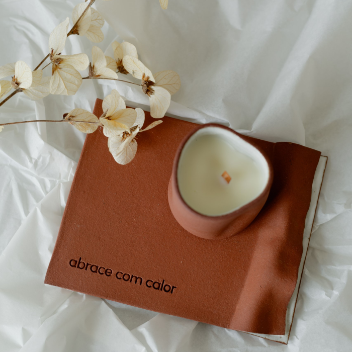 Placa decorativa feita artesanalmente em cerâmica, com acabamento rústico e detalhes orgânicos. A frase “Abrace com calor” traz uma mensagem de afeto e acolhimento, perfeita para compor ambientes com mais significado e beleza. Ideal para apoiar em móveis, prateleiras ou usar na parede, levando charme e um toque artesanal para seu espaço.