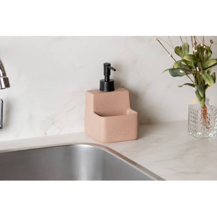 Funcional e elegante, o porta-detergente Granilite traz praticidade à pia com espaço para esponja.