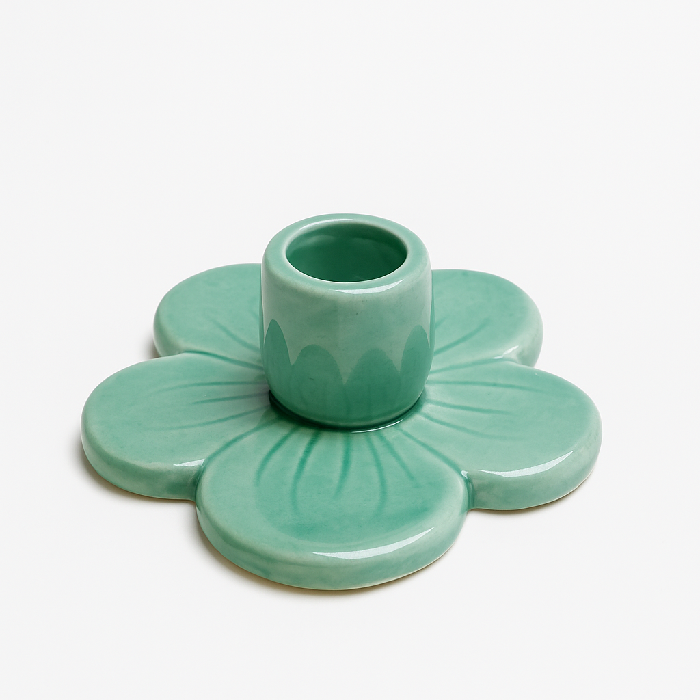 Dê um toque de charme e delicadeza à sua decoração com este porta-vela em formato de flor. Feito em cerâmica esmaltada na cor verde, ele é perfeito para criar um ambiente aconchegante e acolhedor. Ideal para uso em salas, quartos ou mesas de jantar, combina funcionalidade e estilo em uma peça única.