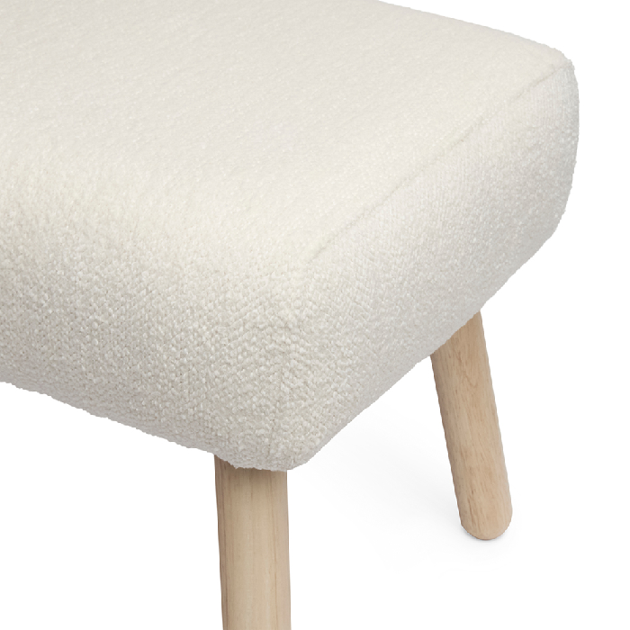 O assento estofado e revestido em tecido de trama natural garante conforto e uma aparência acolhedora, perfeita para compor salas de estar, quartos ou cantinhos de leitura.