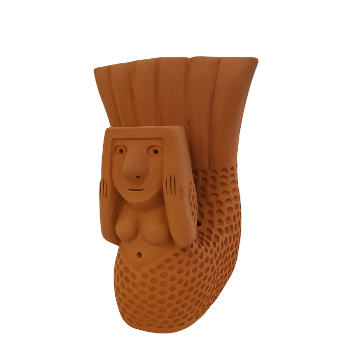 Peça artesanal que une a força poética da cerâmica à arte de Mano de Baé, mestre em transformar o barro em figuras fantásticas que inspiram fé e diversidade.