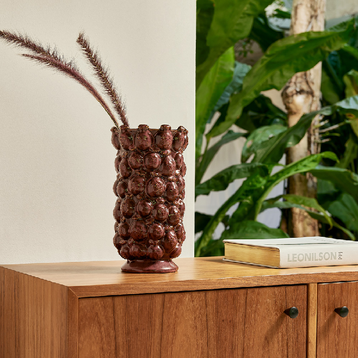 Com design marcante e textura em relevo, este vaso de cerâmica é perfeito para dar personalidade à decoração. Seu acabamento brilhante e tom sofisticado trazem charme e elegância para qualquer ambiente, seja com flores ou como peça decorativa.