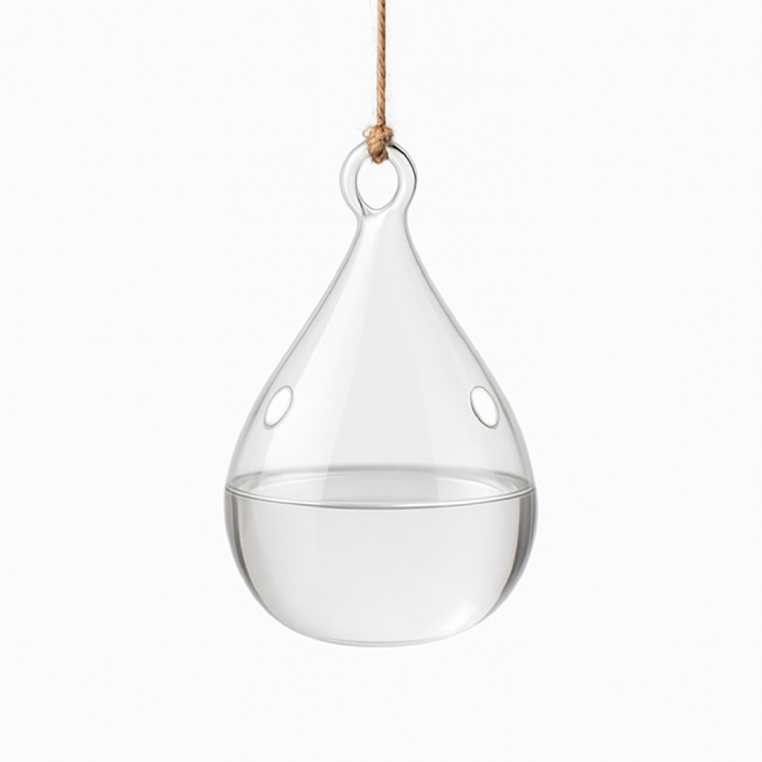 Vaso Suspenso Pêra em Vidro para hidroponia, folhagens ou flor de corte.