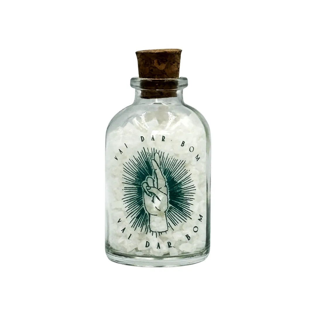 Vidrinho com estampa Vai Dar Bom, preenchido com sal grosso