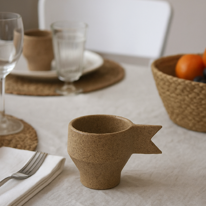 Produzida de cerâmica com acabamento rústico estilo artesanal.