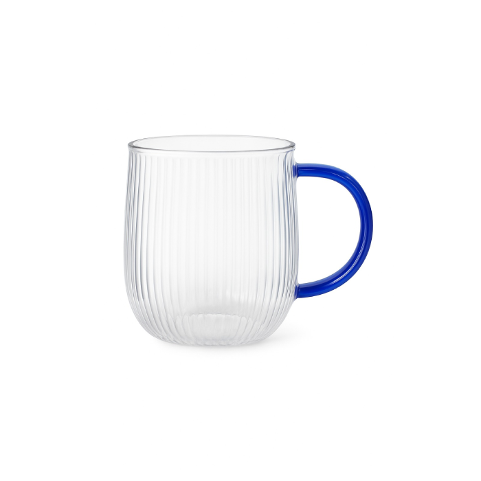 Seu corpo translúcido com textura fina oferece um toque sofisticado, enquanto a alça azul vibrante adiciona um detalhe moderno e descontraído.